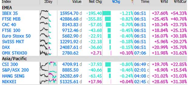 "U.S. Agreed to cut China tariff rate by 10% on Fentanyl progress. China agrees soybean purchases and 1yr pause on rare earth export restrictions. On the plus side the détente remains firm and capital can flow into China tech without fear of new tariff/restriction. On downside there is not much else substantive. Blackwell was not part of the deal (hence the drop in China tech) nor was TikTok. BOJ feels like nothing done for most part. A bit of travel and arrive in EM especially post the Fed."