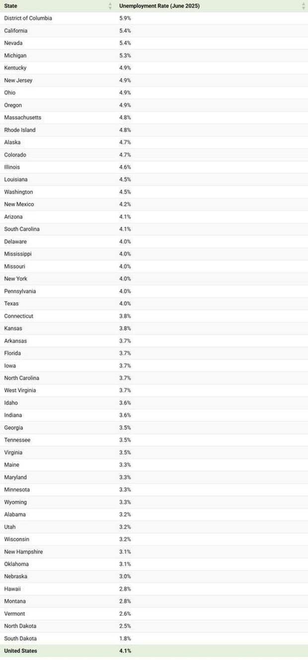 The U.S. labor market remains resilient in 2025, but unemployment figures vary widely by state.