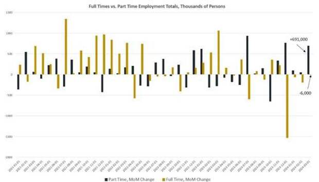 You can see this first point playing itself out on the bar graph below (gold bars are full-time jobs, and black bars are part-time jobs):