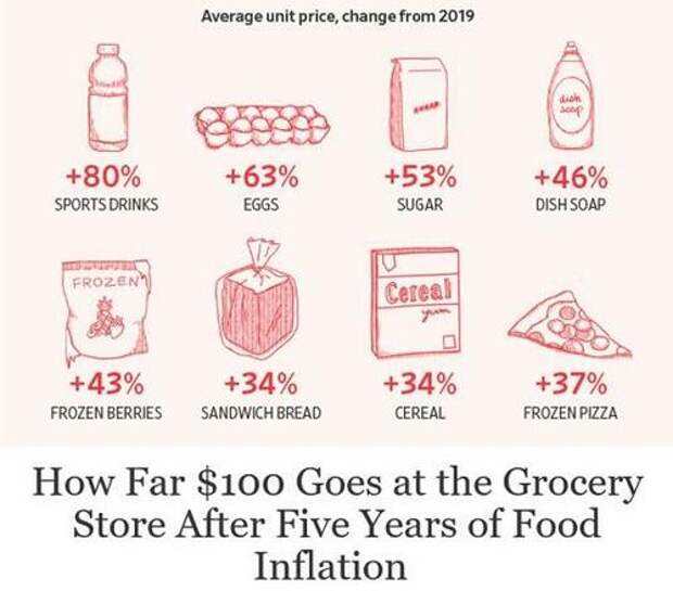 Note: The headline of the story above is misleading. “Food inflation” would mean that food gets bigger. “Food price inflation” is what they’re really talking about. I doubt this article is trying to trick anyone with a New York Times-style inflation con, but words are important! The food did not inflate; food prices went up because the money supply inflated.