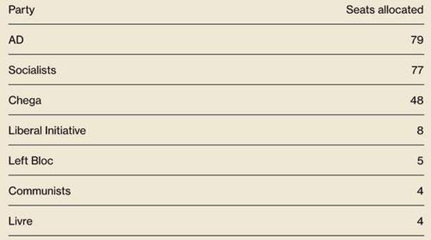 With 99% of votes tallied, the center-right AD coalition had 79 seats to the Socialists' 77. But the biggest storyline is the phenomenal surge by the populist Chega party, which is suddenly the third-largest in Portugal, despite having been founded less than five years ago.
