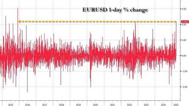 ... as traders prepared for the economic impact. The Japanese yen gained 1.9% against the greenback, and Treasury 10-year yields hit their lowest level since October, further weighing on the greenback. The Euro meanwhile enjoyed its best 1 day against the dollar in the last decade: only the 3.1% surge in Dec 2015 was bigger.