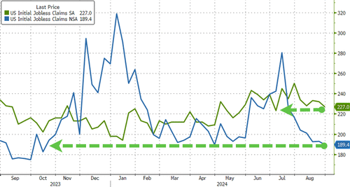 On a non-seasonally-adjusted basis, initial claims are at their lowest in 10 months! ! Of course! Why not.