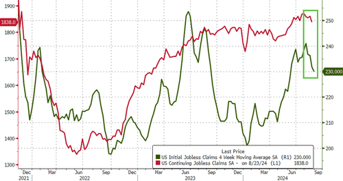 Continuing claims also dropped (to three month lows)...