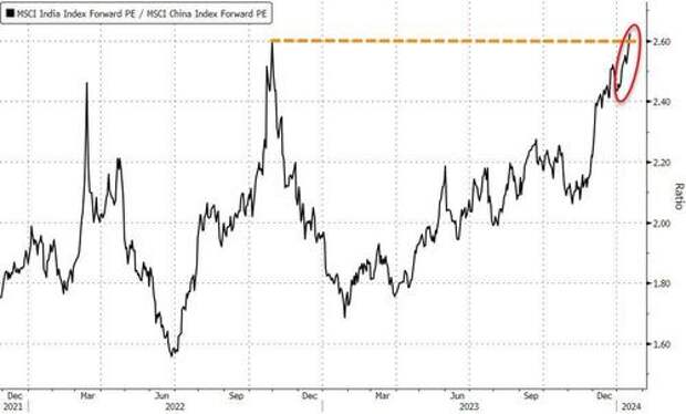 India’s valuation premium over China has hit a record.