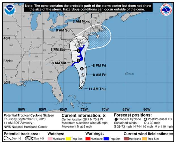 The National Hurricane Center is tracking a storm off the Florida coastline. Computer models forecast a direct hit for the Mid-Atlantic region late Saturday into Sunday.