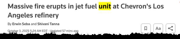 A massive fire erupted overnight at one of the largest and most critical refineries on the U.S. West Coast, which supplies 20% of Southern California’s motor vehicle fuels and 40% of its jet fuel.