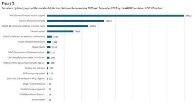 “The largest overall category, by amount donated, was ‘WHO Foundation Operational Support’, which received just under US$40 million over the entire reporting period, representing a majority (approximately 56%) of all funding received by the Foundation to date.”