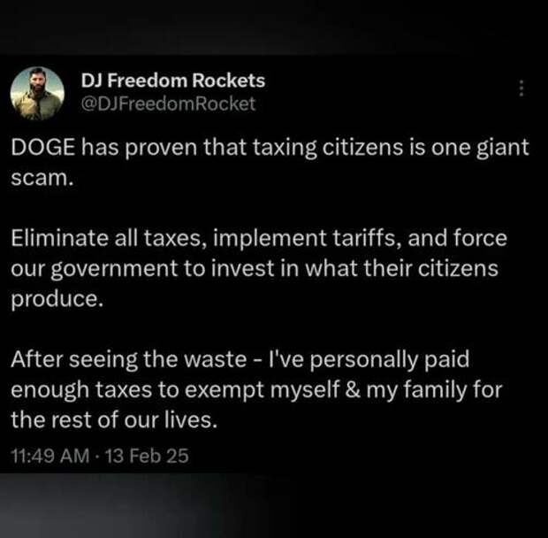 And as DOGE moves into Defence, State, the IRS, Health, the revealed thieving of the upper middle classes will change the world. No wonder they were trying to disarm us.