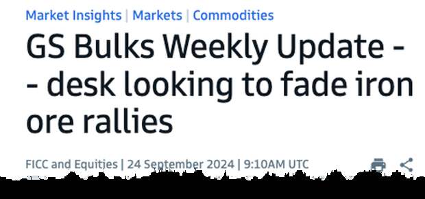 Perhaps that's why Goldman's Thomas Evans told clients two weeks ago that "any rally in iron ore prices should be faded."