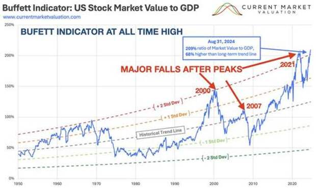 Just look at Buffett’s favourite indicator below, Stocks to GDP.