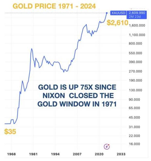 Since then, gold is up 9x in dollars and 10x in pounds.