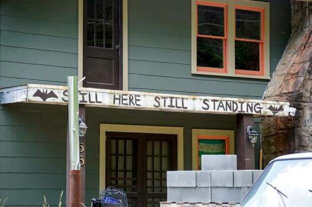 Near the Bat Cave residential area, a ticket booth remained on its side, while the stately homes further upriver lay in ruins or exhibited heavy damage. Many homes that survived the torrent were no longer safe for habitation.