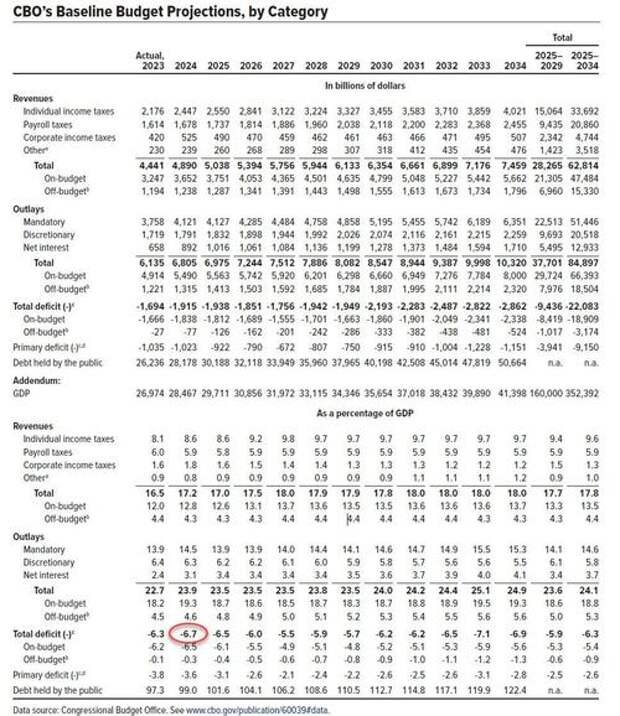 Now, at this point, someone who still has a functioning brain at the CBO looked at the two llines and realized that with the final 2023 deficit printing just over $2 trillion, the CBO's current forecast of "only" $1.5 trillion for 2024 looked idiotic at best, and like total propaganda garbage at worst.