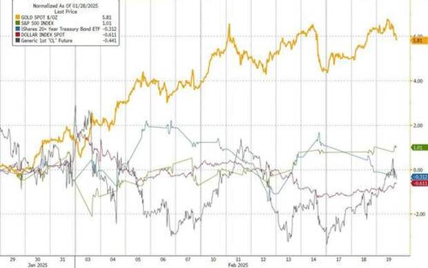 Since the last FOMC meeting - on Jan 29th - the market has coped admirably well with the utter avalanche of headlines spewing from Washington (and around the world). Gold has been the standout choice while stocks, bonds, oil and the dollar are all about flat.