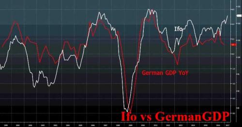 3 percent. The Euro rose to the highest level of 2017...... on the heels of a strong German IFO Business Climate reading, which rose to 112.3, beating expectations and above the last 111 print, indicative of a 3% GDP German print.