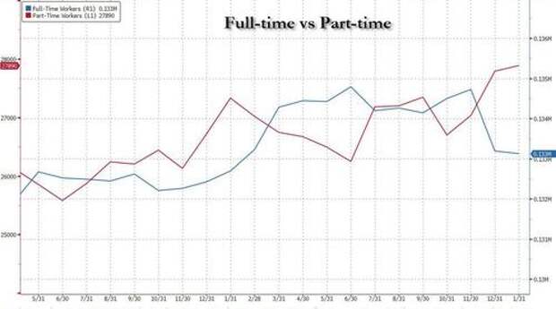 We'll have more to say about this stunning gap shortly, but here is the punchline: in May, the number of full-time workers plunged by 625K to 133.3 million, the lowest since February 2023, while part-time workers surged by 286K to 28 million, the highest on record (more on this shortly).