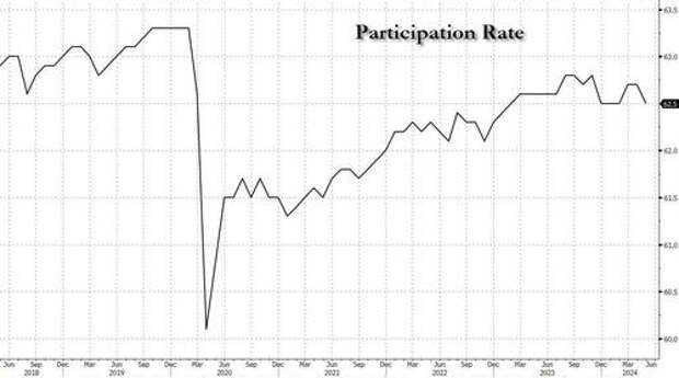 Not only that, but after recovering almost all covid-losses, the participation rate unexpectedly slumped back to 62.5% from 62.7%.