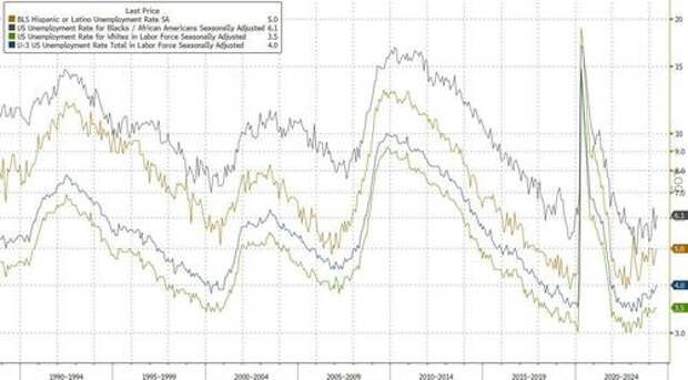 Yet not all was great: indeed, the umemployment rate unexpectedly rose to 4.0%, from 3.9% (amid expectations of an unchanged print). Among the major worker groups, the unemployment rates for adult men (3.8 percent), adult women (3.4 percent), teenagers (12.3 percent), Whites (3.5 percent), Blacks (6.1 percent), Asians (3.1 percent), and Hispanics (5.0 percent) showed little or no change in May.