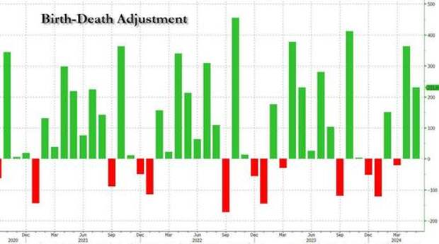 For those asking how much of the 272K number was fabricated, here is the answer: according to the BLS, Birth/Death adjustment (i.e., new business creation) added 231K jobs. These are jobs that were not actually counter but were imputed and plugged in some spreadsheet.