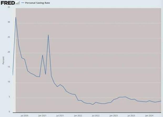 Meanwhile, the personal savings rate has fallen instead of risen.