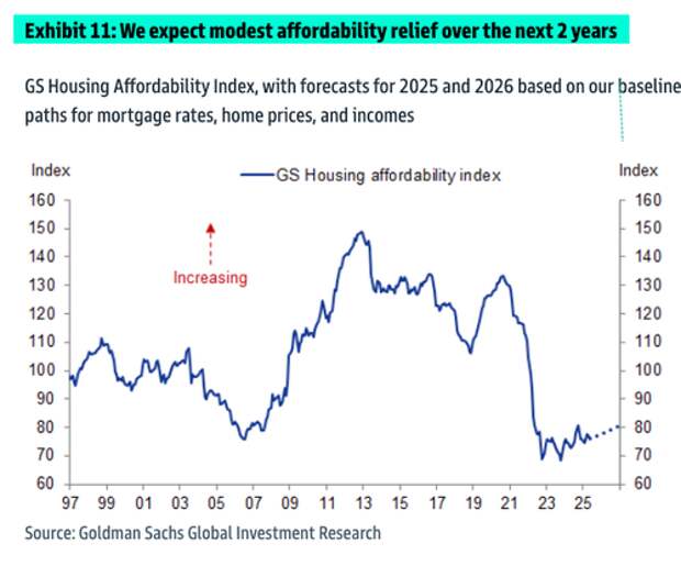 Housing affordability is at its worst in decades, but a new Goldman report suggests some of the most severe pressures may begin to ease, offering modest relief in the years ahead. That's welcome news for prospective homebuyers who've been priced out by soaring home values and the Federal Reserve's aggressive interest rate hiking cycle.