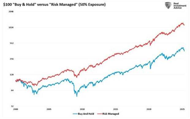As noted above, even the most simplistic of risk management strategies can improve returns over time while maintaining a focus on investment goals. Instead of fixating on beating the benchmark, focus on building a portfolio that aligns with your financial goals and personal risk tolerance. Ultimately, true investing success isn’t measured against a broad index. No one will ever give you an award for beating an index from one year to the next. However, they will measure your success by what matters most: whether you achieved your objectives, like securing a comfortable retirement or funding important goals.
