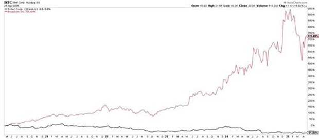 A good example is Intel (INTC) versus Texas Instruments. Over the last five years, Intel has lost 62% of its value as it lost its chip-making dominance to companies like AMD, Nvidia, Broadcom, and others. For investors holding Intel, many are hoping that something will occur and they can recover that loss. However, at any point over the last 5 years, they could have sold Intel and bought virtually any other chip maker and increased their wealth. While there are many examples, this exemplifies the point of opportunity cost. Holding a losing asset for long periods eats away at the wealth-building process and consumes our most precious commodity: time.