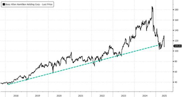 Now, enter the DOGE era: Goldman analysts have downgraded Booz Allen from "Neutral" to "Sell," noting medium-term revenue growth is expected to be flat as federal civilian spending comes under pressure and priorities shift within various federal agencies.