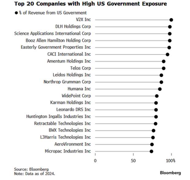 Besides Booz Allen, here are the 20 other companies with the highest percentage of revenue from the US Gov't.