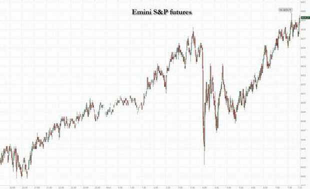 Equity futures are at fresh record highs, erasing a modest dip earlier in the session when a probe found that Nvidia violated anti-monopoly laws in China in a 2020 deal. That killed the mood at the start of a big week, with the Fed expected to make the first of a series of rate cuts, however the mood was promptly lifted again just after 6am ET when Elon Musk bought $1BN in TSLA stock sending the market cap soaring by over $100BN and lifting stocks to new all time highs.