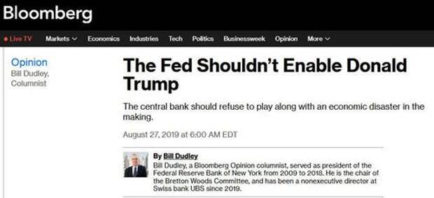 After fading away into retirement obscurity, punctuated by the occasional op-ed on Bloomberg, where all financial has-beens go to pretend they are still relevant and where they are read by nobody, this morning former Goldman top economist and NY Fed president Bill Dudley made waves again, by violently flip-flopping to his recent stance, in what can only be viewed as another confirmation the Fed is nothing more than a political tool for a faceless, oligarch elite.