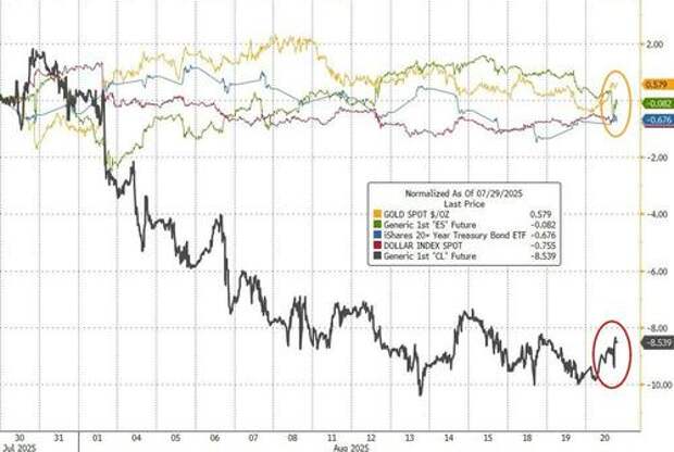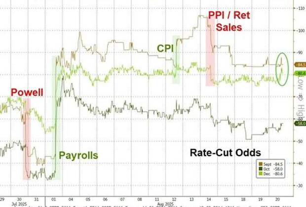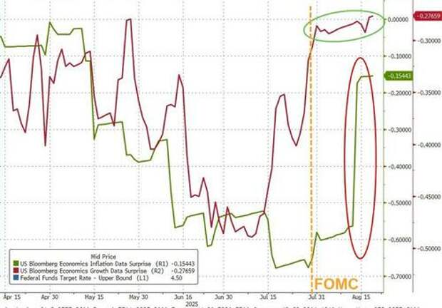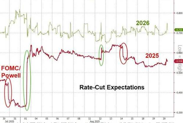Since the last 'dovish' FOMC statement (and Powell's post-statement 'hawkish' presser) on July 30th, we have had 'cool' payrolls print and 'hot' inflation prints with retail sales mixed... and now everyone is anticipating Friday's speech by Powell at Jackson Hole.