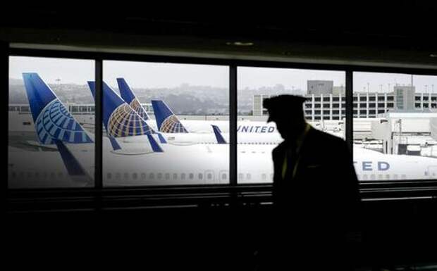 A United Airlines flight crew walks through the terminal at San Francisco International Airport in San Francisco on April 12, 2020. Justin Sullivan/Getty Images