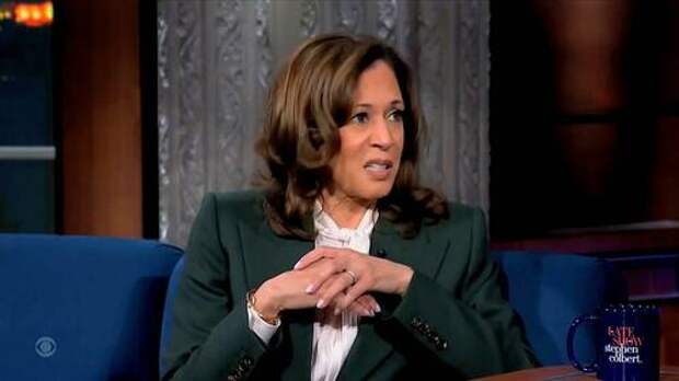 Harris appeared on Colbert’s moribund show, of course she did, and served up heaps of word salad while hawking a book she claims to have written.