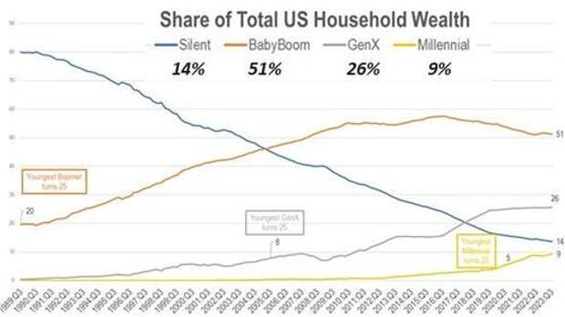 The generations who bought homes 25 or more years ago have accumulated most of the wealth. When houses increase in value ten-fold while wages rise by a third, this is the result: