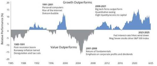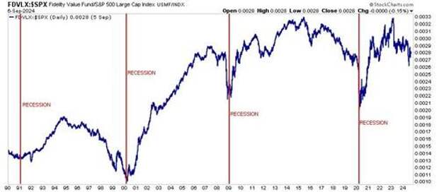 “The chart shows the difference in the performance of the “value vs. growth” index. (Fidelity Value Fund vs S&P 500 Index).