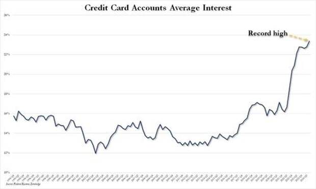 US credit debt recently surpassed $1 trillion and continues to expand rapidly. Making matters worse, annual percentage rates (APRs) on credit card debt have hit record highs, compounding the financial misery for cash-strapped consumers in the era of failed 'Bidenomics'.