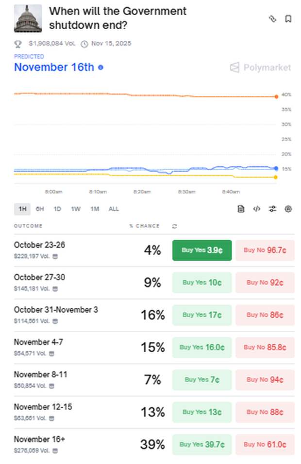 Latest shutdown odds from Polymarket.