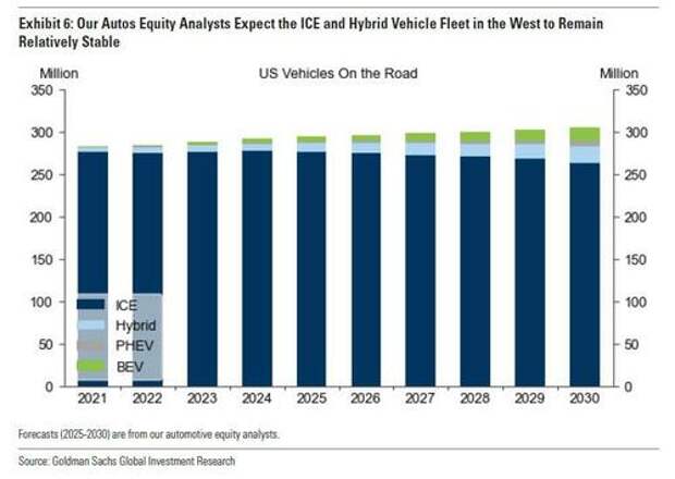 Meanwhile, in the West, Goldman's autos equity analysts expect the ICE and hybrid vehicle fleet to remain relatively stable, with no large impact on the platinum balance