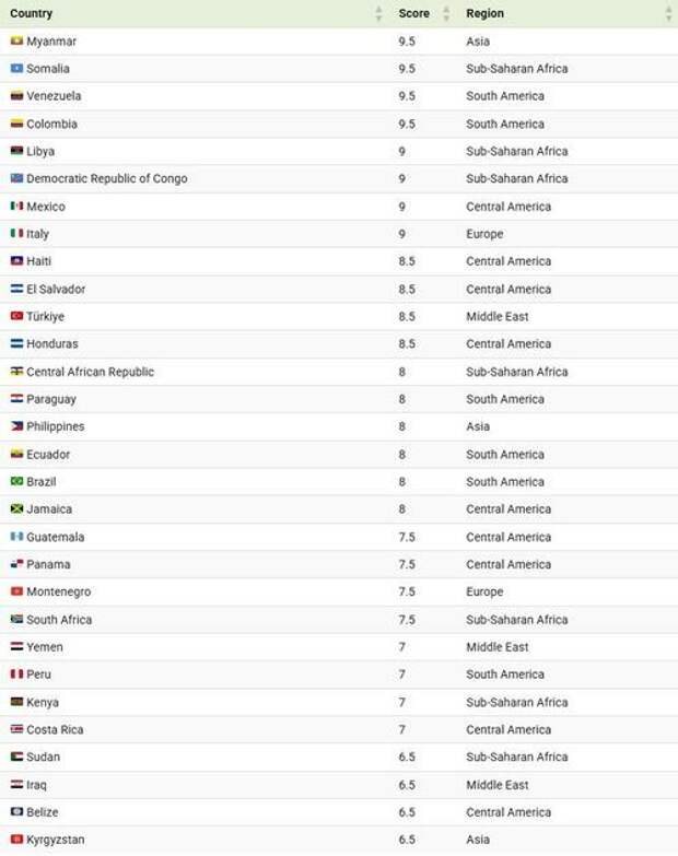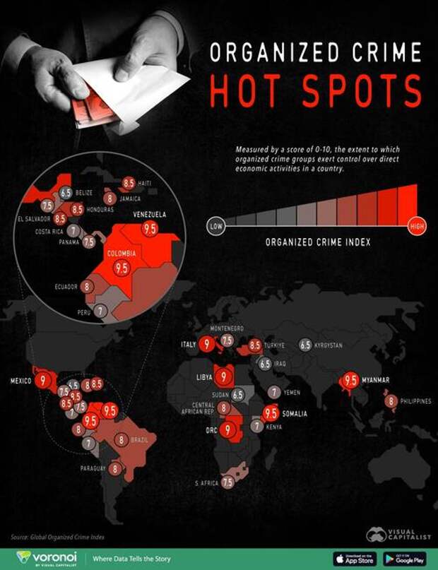 Overall, countries were scored on a scale of 0 to 10 by the extent to which organized crime groups exert control over their direct economic activities.