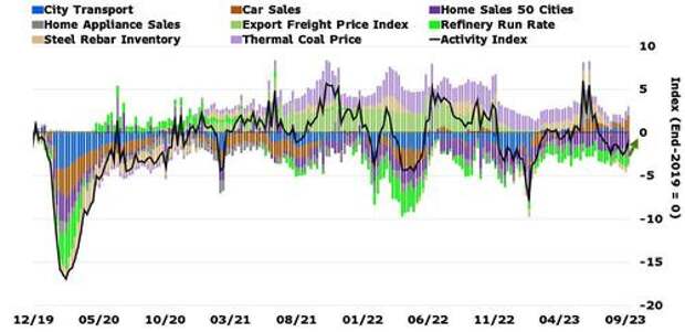In fact, as Bloomberg's Chang Shu and David Qu noted, China’s recovery could be starting to get some traction, supported by stronger public investment and monetary easing, as weekly activity data rebounded in September...
