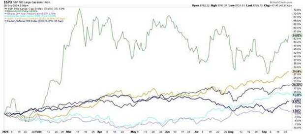 S. economic health increase (as per Michael Hartnett of BofA.) However, gold performs poorly as economic growth resumes and the deficit declines. Such is logical, except that since 2020, gold has soared in price even as economic health remains robust and the deficit as a percentage of GDP continues to decline.While stocks and gold have risen this year, bonds, commodities, real estate, and cryptocurrencies have also enjoyed gains.
