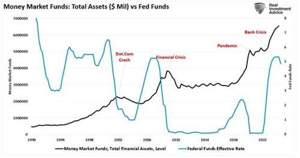 Of course, a massive accumulation of cash in money market funds will face declining yields as the Federal Reserve cuts interest rates.