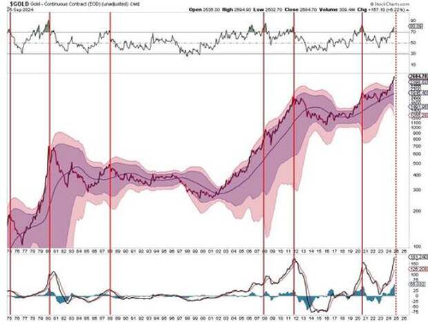 On the other side of the bull/bear argument are “gold bugs” enjoying soaring gold prices because “debts and deficits” are finally eroding the U.S. economy. As Michael Hartnet of BofA recently stated: