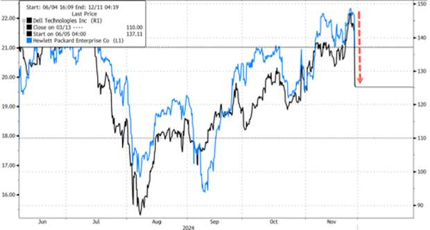In premarket trading, Dell shares dropped 12%, while HP shares are down 8%
