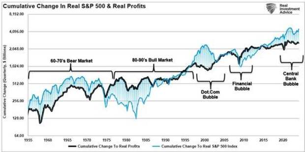 Historically, when the market trades well above actual profits, there has always been a mean-reverting event to realign expectations with economic realities.