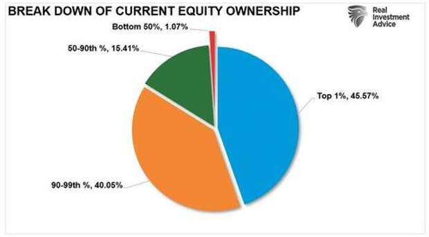 However, Yahoo suggests that the rising bullish sentiment in the consumer survey reflects the “haves and have-nots.” That statement is understandable when considering the breakdown of household equity ownership and the finding that the top 10% of households hold 85% of the equities.
