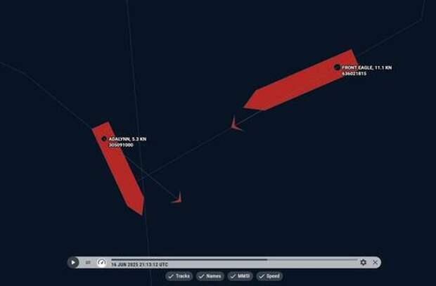 In the early morning hours of Tuesday, crude oil tankers Adalynn and Front Eagle collided in the Gulf of Oman, about 24 nautical miles east of Khor Fakkan in the United Arab Emirates, just outside the critical Strait of Hormuz chokepoint. The maritime incident occurred amid ongoing regional instability and increased GPS signal degradation, most likely linked to broader electronic warfare surrounding the Israel-Iran conflict.
