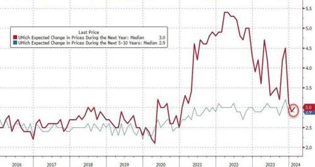 .. or the start of a loss of faith that The Fed has won (as the short-term inflation expectations ticked up to 3.0%)...Source: Bloomberg